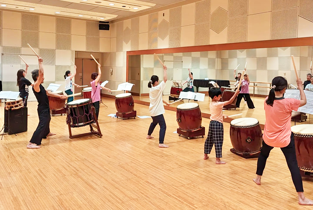 練習場所は主にタクトホームこもれびGRAFAREホール(保谷こもれびホール)を使用。講師はプロの和太鼓奏者が直々に指導するので、太鼓に初めて挑戦する方も安心だ。さらに、最大9名までの少人数制のため、一人ひとりのレベルに合った指導が受けられ、どんどん上達していく。和太鼓の魅力は、音楽であり、スポーツでもあること。年齢問わず誰もが楽しめる楽器で、健康増進や多世代の交流にも繋がっている。